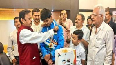 उप मुख्यमंत्री ने प्रतिभाशाली निशानेबाज पाण्डेय को किया सम्मानित