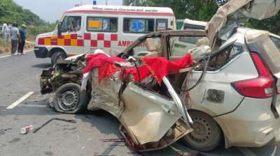 श्रद्धालुओं की कार ट्रैक्टर से टकराई, चार की मौत, दो गंभीर घायल