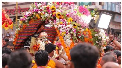 महाकाल की राजसी सवारी पर हेलीकॉप्टर से हुई पुष्पवर्षा
