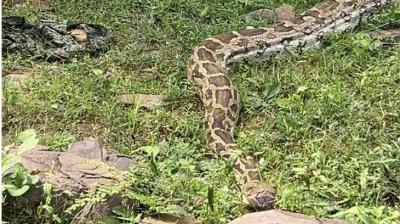 खेत में दिखा 15 फीट लंबा अजगर, कुत्ता निगलने की घटना से गांव में मचा हड़कंप
