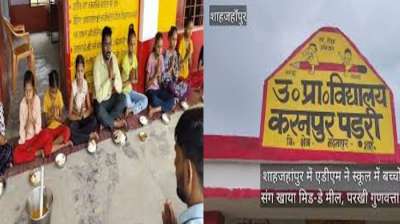 शाहजहांपुर: एडीएम ने बच्चों संग बैठकर खाया मिड-डे मील, भोजन की गुणवत्ता का लिया जायजा