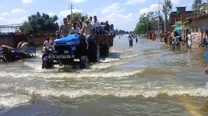 पीलीभीत जिले में देवहा और शारदा नदियों की बाढ़ से हालात बिगड़ गए हैं। शहर से लेकर गांवों तक पानी भर गया है। टनकपुर हाईवे और बीसलपुर-बरेली मार्ग पर दो फुट तक पानी बह रहा है। लोग जान जोखिम में डालकर गुजर रहे हैं, जबकि कई जगह ट्रैक्टर-ट्रॉली से लोगों को पार कराया जा रहा है और इसके लिए किराया भी वसूला जा रहा है।