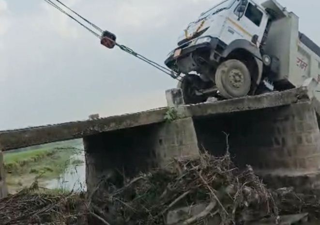 छतरपुर में बड़ा हादसा: रेत से भरे ओवरलोड ट्रक के गुजरते ही पुल ढहा