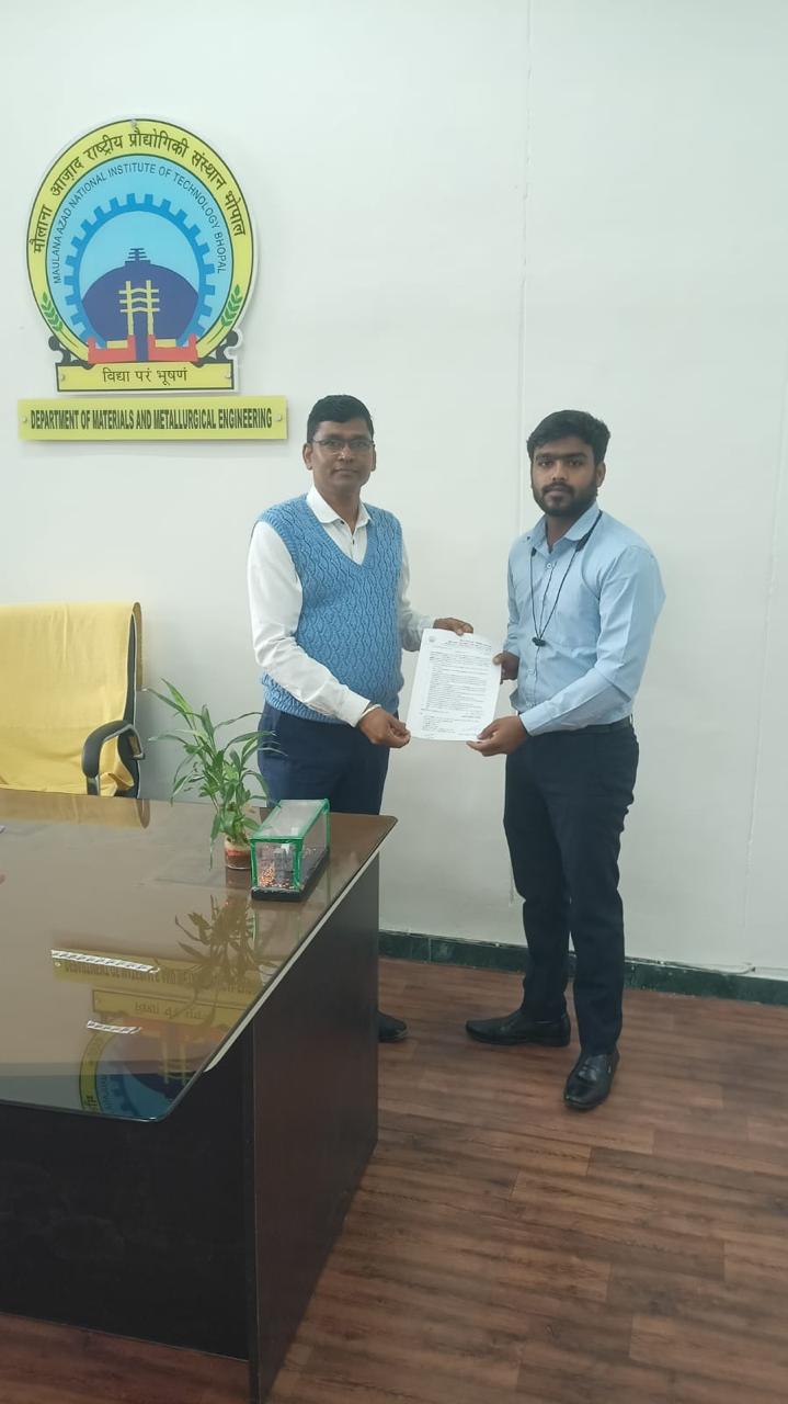 भोपाल : डिविजनल औद्योगिक प्रशिक्षण संस्थान (आईटीआई) भोपाल के टर्नर ट्रेड के वर्ष 2024 उत्तीर्ण छात्र साजन विश्वकर्मा का मौलाना आजाद राष्ट्रीय प्रौद्योगिकी संस्थान (मैनिट) में एयरोनॉटिक्स अनुसंधान एवं विकास बोर्ड–रक्षा अनुसंधान एवं विकास संगठन (एआर एंड डीबी–डीआरडीओ) द्वारा प्रायोजित अनुसंधान परियोजना के अंतर्गत चयन हुआ है।