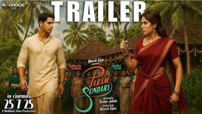 मुंबई : सिद्धार्थ मल्होत्रा और जान्हवी कपूर की रोमांटिक फिल्म ‘परम सुंदरी’ का ट्रेलर आज रिलीज हो गया है। ट्रेलर में सिद्धार्थ और जान्हवी के बीच जबरदस्त केमिस्ट्री देखने को मिली है। ट्रेलर में रोमांस के साथ कॉमेडी और ड्रामा की भी झलक देखने को मिली है।