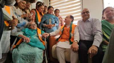 भाजपा के स्थापना दिवस के मौके पर राष्ट्रीय अध्यक्ष जेपी नड्डा ने दिल्ली में पार्टी की वरिष्ठ कार्यकर्ता 98 वर्षीय शकुंतला आर्य से मुलाकात की
