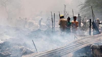 लखनऊ अग्निकांड में 200 से ज्यादा झोपड़ियां राख, 6 बच्चे अब भी लापता
